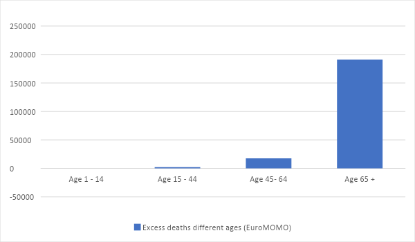 In those aged over 45, there have been more than 200,000 excess deaths. The figures from EuroMOMO in more detail are: