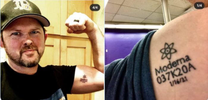 No, report these anti-vaxxers to the authorities, shout them down on social media, switch off your critical-thinking faculties, and get in line to get your vaccination! The fate of the human species depends on it! And, if you’re lucky, maybe GloboCap will even give you one of these nifty numerical Covid-vaccine tattoos for free!