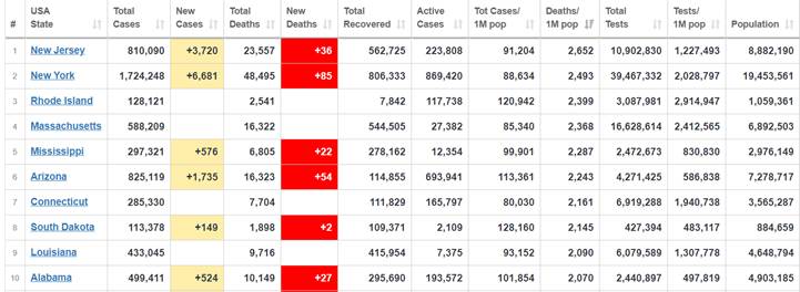 The viral pandemic exploded in America’s blue states, regardless of mask mandates, while red states that did not have mask mandates compare very favorably. The top four states in deaths per capita were blue states with strong lockdown policies and mask mandates.