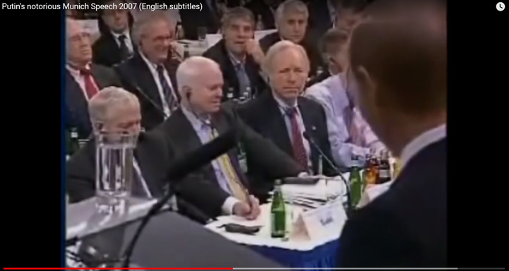 Squirming under the Putler’s gaze at the 2007 Munich PEACE Conference.