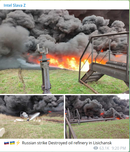The “evil” Russkies have just obliterated an oil refinery in the Ukraine.