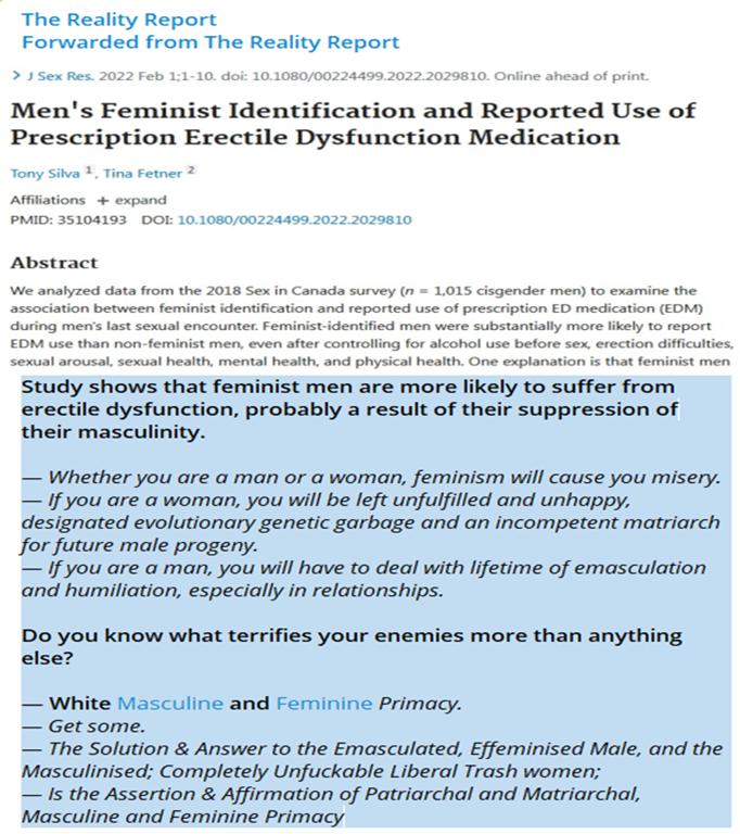 Feminist males, cisgendered or not, suffer from EDM; Erectile Dysfunction Mal-Lady.