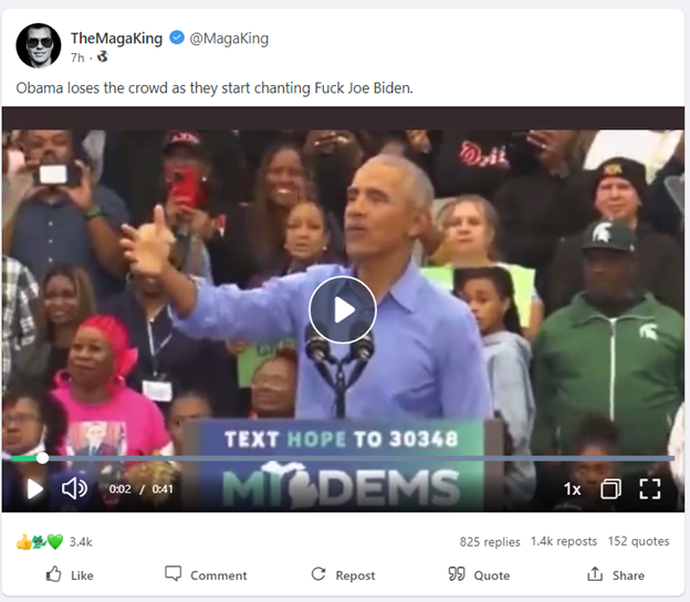 Here, Obama loses the crowd; presumably his type of crowd, as he never spoke to any other: