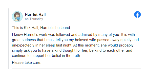 So said Kirk Hall, husband of Dr. Harriet Hall, 77, the famous Air Force doctor and VAXX pusher who just died of congestive heart failure. He was mad that some had suggested she died of the vaccine she had been pushing. I don’t know whether she did or not, but I do find it curious that a doctor who had “an arrhythmia of many years duration and was already in delicate health” in 2020 would not only push a untested faux-vaccine from Pfizer—one of the most corrupt companies on the planet —but allegedly also take multiple doses of it herself.