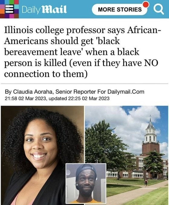 ILL NOISE professor says White Americans should get “White bereavement leave” when a White person is killed by a niggardly (even if they have little connection with them).