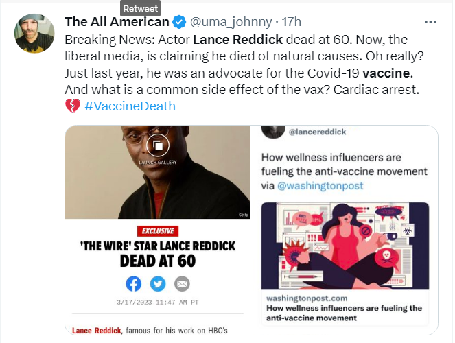 This useful idiot, Lance Reddick, use his fame and prestige to convince thousands to take the VAXX.
