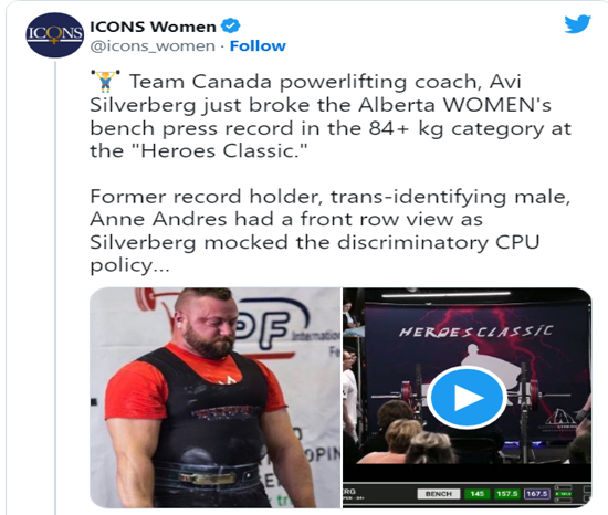 Prior to (((Silverberg))) taking action, “the women’s bench press title holder in the 84+ kilogram category [was] Tranny Anne Andres, who is a biological male (with balls and penis)”.
