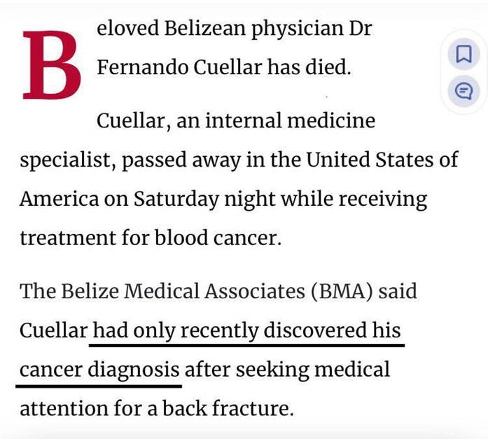 “Dr. Cuellar’s recent turbo cancer diagnosis and succeeding death came as a shock to his clueless VAXXinated family, friends, and patients.”