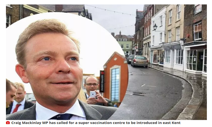Thanet MP Craig Mackinlay calls for ‘super vaccination Centre’ in east Kent.